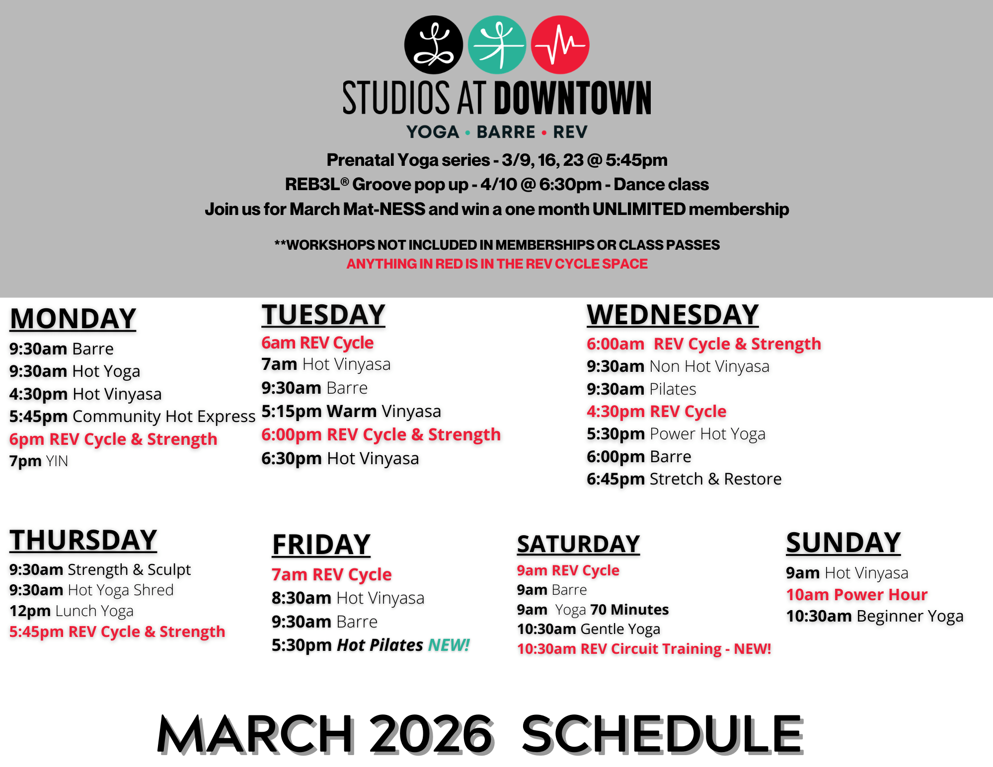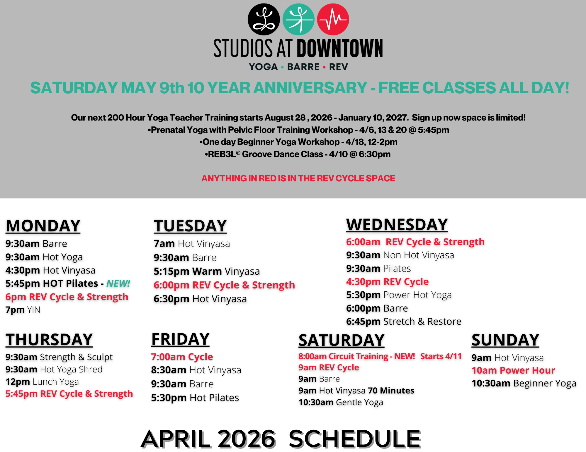 Whether you’re seeking strength, clarity, or inner peace, our Yoga, Barre, and REV classes offer a pathway to change—physically, mentally, and spiritually. No matter your age, body type, or fitness level, our programs are designed to support your personal journey and help you grow.